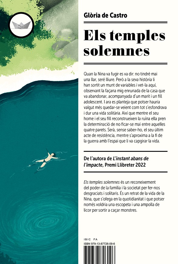 Quan la Nina va fugir es va dir: no tindré mai una llar, seré lliure. Però a la seva història li han sortit un munt de variables i vet-la aquí, observant la façana mig enrunada de la casa que va abandonar, acompanyada d’un marit i un fill adolescent. I ara es planteja que potser hauria valgut més quedar-se veient com tot s’esfondrava i dur una vida solitària. Així que mentre el seu home i el seu fill reconstrueixen la ruïna ella pren la determinació de no ficar-se mai entre aquelles quatre parets. Serà, sense saber-ho, el seu últim acte de resistència, mentre s’aproxima a la fi de la guerra amb l’espai que li va capgirar la vida. Els temples solemnes és un reconeixement del poder de la família i la societat per fer-nos desgraciats i solitaris. És un retrat de la vida de la Nina, que s’ofega en la quotidianitat i que potser només voldria una escopeta i una ampolla de licor per sortir a caçar monstres.