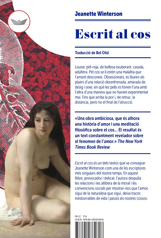 Louise: pèl-roja, de bellesa exuberant, casada, adúltera. Pel cos se li estén una malaltia que l’amant desconeix. L’obsessió fa que es lliurin als plaers d’una relació desenfrenada, amarada de desig i sexe, en què les pells es fonen l’una amb l’altra d’una manera que no havien experimentat mai. Fins que arriba la por i, de retruc, la distància, però no el final de l’atracció. Escrit al cos és un dels textos que va consagrar Jeanette Winterson com una de les escriptores més singulars del nostre temps. En aquest llibre, provocador i delicat, l’autora despulla les relacions i les allibera de la moral i les convencions socials per mostrar-nos que l’amor, sigui de la naturalesa que sigui, deixa traces inesborrables de vida i passió als nostres cossos.